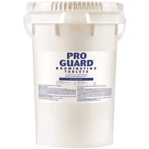 The Proguard 50 lb Brominating Tablets are ideal for use in spas and indoor pools. It is an effective swimming pool and spa water sanitizer. Works well over a wide range in pH without producing irritating and odorous amines.