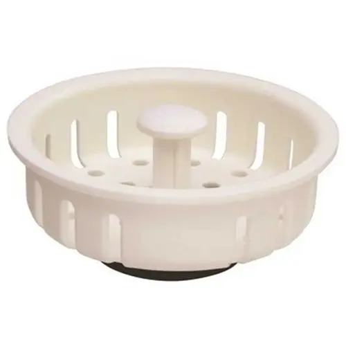 Proplus plastic basket strainer. White rubber seal fits standard drains measures 3-1/2 in. The product is high quality and reliability and durability. The product is ease to use and attractive styling. The country of origin is Taiwan.