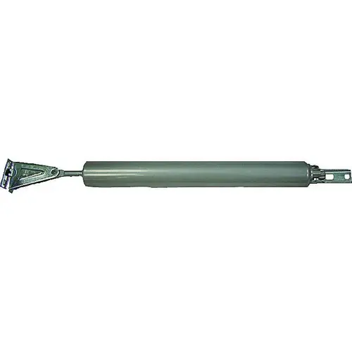 Internal spring for shock absorption. Provides 90 deg opening for outward swinging doors. Adjustable closing speed control valve. Permanent internal lubrication. Overall length 16-1/2 in. Load capacity of 65 lb.