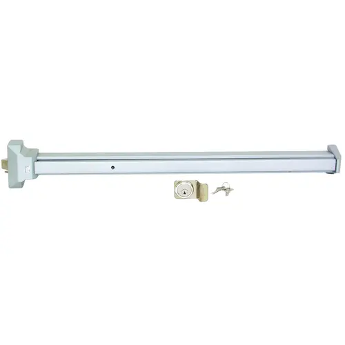 Panic Bar, 32-1/2 in W, Stainless Steel/Steel/Zinc Alloy, Powder Coated, 1-3/4 in Thick Door Silver