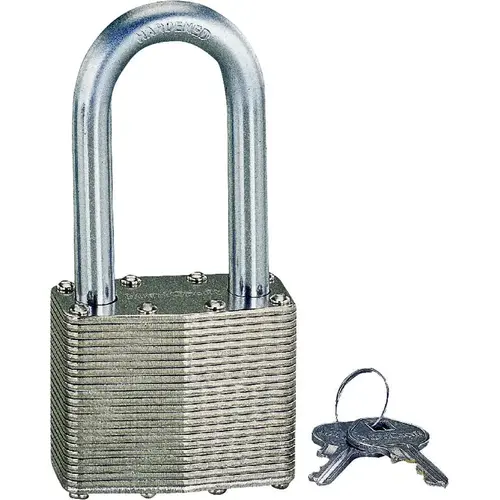 The ProSource padlock is ideal for high security. It has a steel tumbler with a hardened steel shackle and two brass keys are included.