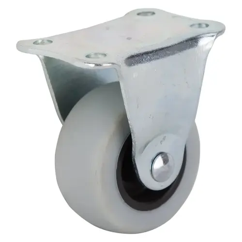Fixed plate non-marking caster brake. Gray thermoplastic rubber wheel.