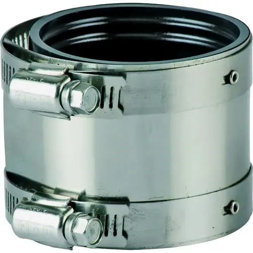 The ProSource pipe couplings connects no-hub drain pipes on any combination of plastic, steel or extra-heavy cast iron pipes. Series 300 stainless steel shield and neoprene gasket. Not recommended for underground use.