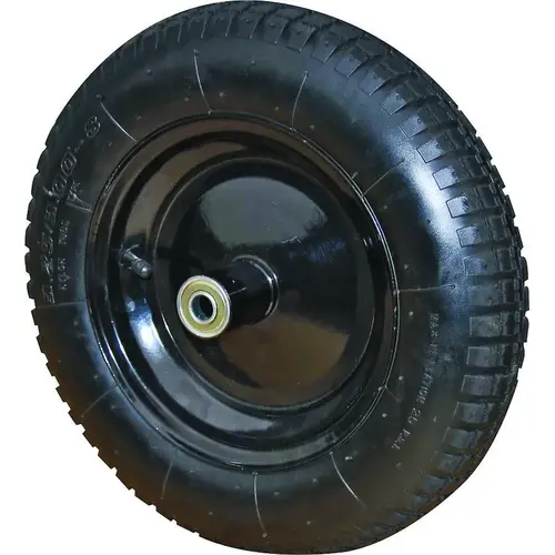 This wheelbarrow wheel with tube replaces the wheel on wheelbarrow #5990148, it will keep your wheelbarrow in working order. The welded metal rim is incredibly durable and the pneumatic tires provide a smoother operation than flat-free. Great for working on rough, rocky, and uneven terrain.