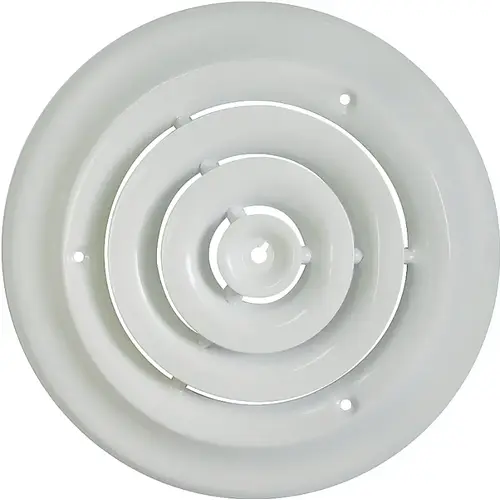 This white round diffuser is used to cover duct openings. It's designed for maximum airflow, each diffuser features a white powder coated finish for a classic look and step down rings that deflect the air stream. It's made from high-quality steel, this diffuser was built to last.