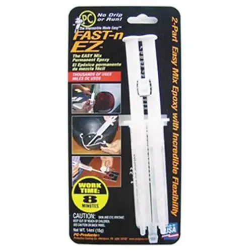 PC-FAST-N EZ is an extremely flexible translucent paste epoxy. Ease of use is the key with this self-mixing formulation. PC-FAST-N EZ flows beautifully through a static mix nozzle that mixes the epoxy thoroughly. The mixing nozzle doesnt just mix the product, it also helps with precise applications. PC-FAST-N EZ has a fast cure time making jobs complete and easy as 1-2-3.