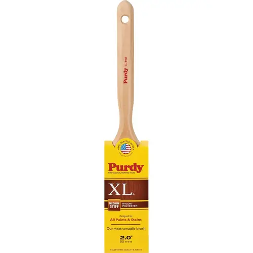 Natural, long trim handle. Square edge, brushed copper ferrule. Polyester blend bristles. Professional quality paint brushes fashioned with a blend of nylox (dyed nylon) and polyester filaments. Only solid, round, tapered filaments are used in these brushes. Filaments are tipped and flagged by a special process to make them as close to naturally flagged bristles as possible. XL brushes are recommended for both interior and exterior painting with all paints. The stiffness retention from the polyester content makes these brushes highly effective for exterior painting in hot and humid conditions.