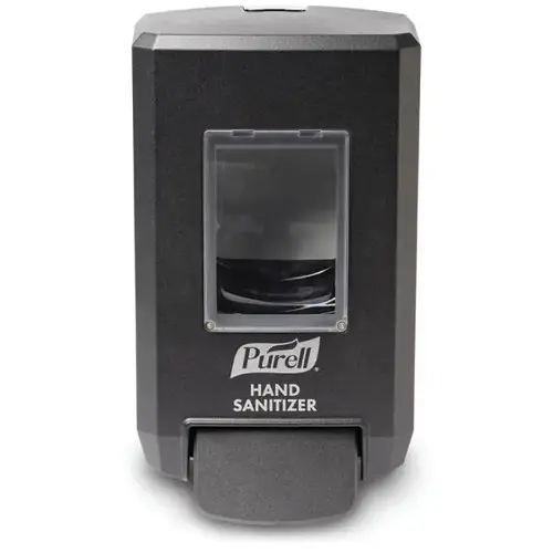 Graphite Push-Style Dispenser for PURELL CS4 1200mL Hand Sanitizer Refills. Hand Sanitizer dispenser for extreme environments. IP-53 water-resistant design to help keep rain and dust out. Engineered Resin is over 3X stronger than materials used in most dispensers. Maintains performance and appearance in extreme temperatures (-40°F - 122°F). Durable Hardware included with dispenser. Additional flexible pole mounting option available (5500-01-BRKT). Uses existing PURELL CS4 Hand Sanitizer 1200mL Refills.