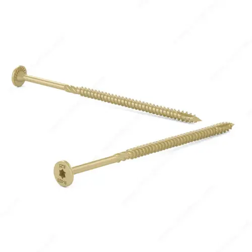 The PWR DRIVE CST screw is made of hardened steel to provide a degree of high tensile strength, high torque, and super shear strength that a regular lag screw just cannot offer. This results in the instant advantage of not having to pre-drill, which is quite a time saver on the job site. The sharp threads and points bite quickly, a type 17 tip reduces wood splitting and a clearing thread, called the "U" thread, reduces the friction on the screw shank, for reduced driving torque and more importantly increased battery life for your tools. The PWR DRIVE CST has a wide flat head with nibs and under-head cutting serrations for easy countersinks and will embed in wood with an incomparable clean finish. This screw also has a T-40 firm-grip drive, that not only provides exceptional torque strength but allows the CST to stick to the bit, which is paramount when you work in less than ideal positions.