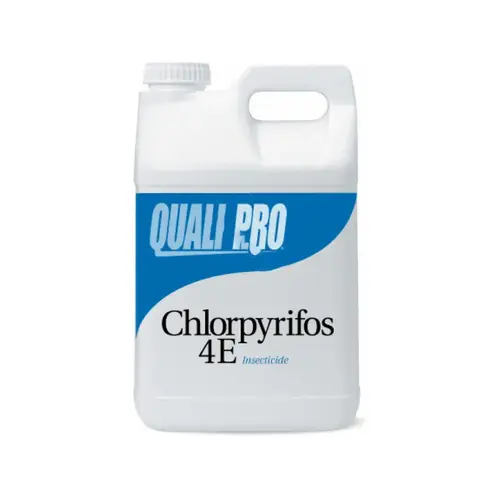83013388 Quali-Pro 2.5 Gallon Chlorpyrifos 4E Insecticide. Chlorpyrifos 4E is a broad spectrum restricted use insecticide for commercial nursery and greenhouse. The active ingredient causes targeted insects to stop eating by disrupting their nervous system. It controls over 100 different insects.