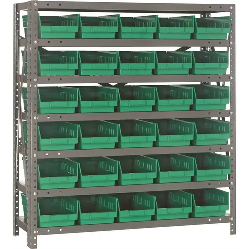 1239-102GN is an economical small parts storage steel system that keeps parts easily accessible. Open hopper front bins with label area provide fast access to stored items. This all in one unit is easy to clean and will not rust or corrode.