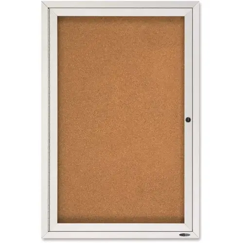 Enclosed outdoor bulletin board offers a self-healing cork surface and high-density backing for maximum pin-holding power, ensuring documents stay securely posted. One locking, water-resistant, shatterproof acrylic glass door and aluminum-vented casing allow posting, protecting and easily updating important messages. Satin-finish anodized aluminum frame offers full-length hinges and weather-resistant durability. Bulletin board includes one key.