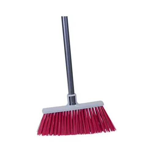 Sweeps crushed brick, block, rebar, landscape stones and other punishing objects. Simply hose down the non-porous polypropylene fiber to rid the broom of the day's work. Extra-thick and sturdy powder-coated steel handle, indestructible block super-stiff, 12 in sweep width, large diameter oval fiber for greatest coverage. Tapered 5 in x 6 in fiber fill for demanding, heavy construction debris.