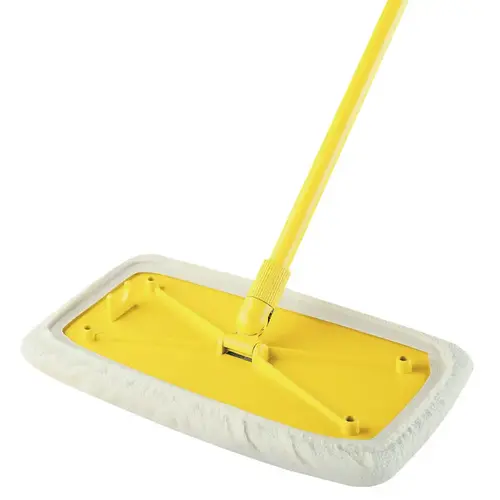 This professional-grade cleaning tool features a 48 in steel handle with a soft terry cloth mitt. The mitt won't scratch or damage floors and can be used on all hard floor surfaces. It can be used either wet or dry and is removable for machine washing.