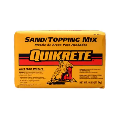 Quikrete Sand/topping mix consists of a uniformly blended mixture of Portland cement and commercial-grade sands, used for repairing and topping damaged horizontal concrete surfaces less than 2 in (51 mm) thick.