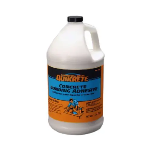 Quikrete concrete bonding adhesive is specifically formulated for permanently bonding new concrete or plaster to old concrete or plaster. It is suitable for interior or exterior applications. Quikrete concrete bonding adhesive is also used as the required primer for Quikrete self leveling floor resurfacer.