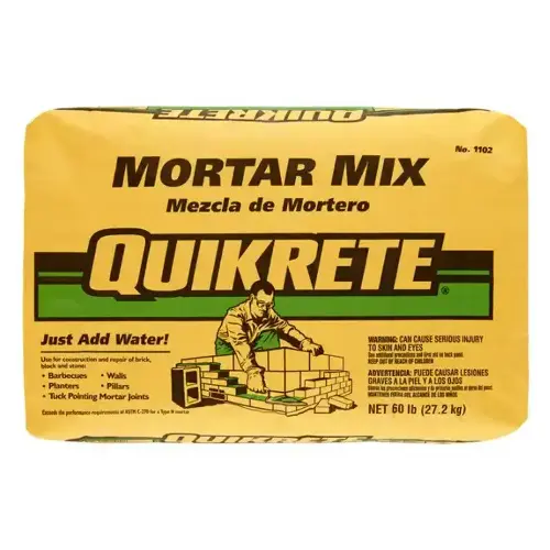 Pre-blended mortar mix in an 80-pound bag, designed for laying brick, block, and stone in poolside applications. Made of Type N masonry cement and graded sand, meets ASTM C270 standards. Ideal for non-load-bearing walls, pillars, and repairs like tuck-pointing, it offers a strong bond with just water added.Compatible with brick, concrete block, and stone for above-grade, non-structural use, per Quikrete specs.Features a gray blend, yields 12 blocks (8"x8"x16") or 37 bricks (8"x2"x4") per bag, cures to 750 PSI, per Quikrete documentation.Mixes with 9 pints of water per bag, applies with a trowel, sets in 1-2 hours, full cure in 28 days, no primer needed.Simplifies your poolside masonry jobs with a reliable, ready-to-use mix, delivering durable results clients trust with minimal effort.
