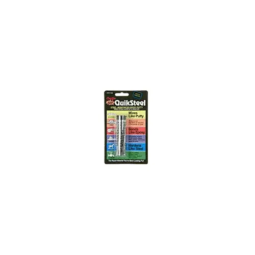 CRL QuikSteel Epoxy Putty is a steel fortified, high temperature epoxy putty that can be used to make quick, permanent repairs of all materials like Metals, Glass, PVC, Plastic, Ceramics, Wood and More. It will not rust or oxide as it is impervious to chemicals and corrosion. It resists temperatures up to 500°F (260°C) and Sets in 5 minutes, fully cures in as little as 1 hour, sets up underwater, bonds to wet or dry surfaces and hardens like steel. QuikSteel permanently bonds to aluminum, brass, copper, steel, PVC, fiberglass, plastics, glass, ceramics, wood and more. It's easy to use. Cut off amount needed for repair and knead QuikSteel to one uniform color. It holds bonds to minus 90 degrees F (minus 68 degrees C). CRL QuikSteel can be used to make repairs in the following applications: Automobile: Gas tanks, Radiators, Blocks, Tailpipes, Mufflers, Intake manifolds, Batteries, Stripped bolt holes, Body rust areas. Home Repair: Furniture, Appliances, Screens, Tools, Glass, Mirrors, Lawn Equipment, Woodwork, Cabinets, Stripped Screw Holes. Hobbies: Crafts, Ceramics, Glass, Toys, Jewelry, Plastics, Models (can be shaped and formed). Marine Use: Fiberglass, Aluminum or Plastic Boats, Motors, Lower Units, Gas tanks, Cracked Manifolds (sets up under water). Plumbing: Copper, Steel pipes, PVC, Faucets, Fixtures, Porcelain, Stripped Screws, Ceramic Tile. Farm Repair: Farm Equipment, Tractors, Gates, Hinges, Troughs, Fences, Metal Buildings, Irrigation Equipment. DS 07/08/2016