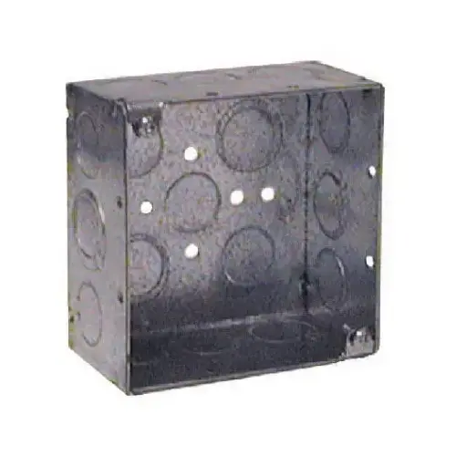 Orbit Switch Box, Knockout Cable Entry, 16 Knockouts, 1/2, 3/4 in Knockout, 2 Gangs, Square Shape, 30.3 cu-in, Dimensions: 4 in W x 2-1/8 in D x 4 in H, Steel, Gray, Galvanized, FM Bracket Mounting