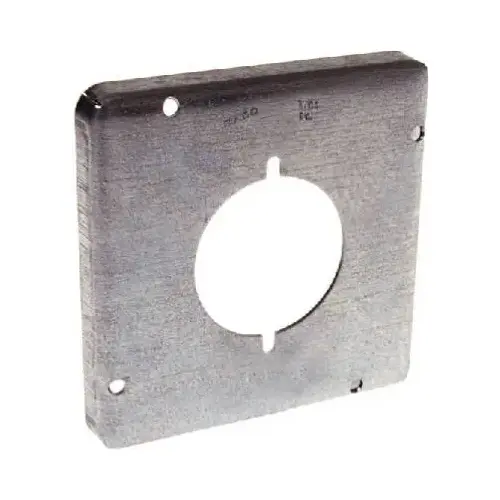RACO Receptacle, Square Shape, 2.141 in Diameter Hole, 1 Gangs, Steel, Galvanized, Silver, 0.563 in Length, 4.69 in Width, 4.69 in Height, 2-9/64 in Diameter, Surface Mounting, Suitable for: 30 to 50 A Receptacles, Includes: Captive Screws, Rounded Corners