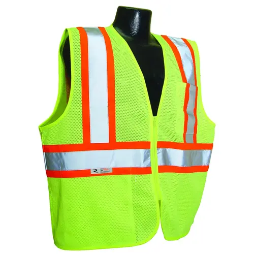 Radians SV22-2 economy Type R class 2 safety vest with two-tone trim is compliant protection at an economical price. Excellent choice for extreme work environments like asphalt paving that greatly reduce the useful life of a vest or protection for short-term labor. Reflective stripes on contrasting trim make workers much more noticeable in low light and broad daylight.