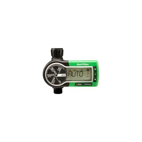 Automate your hose end sprinklers, drip irrigation system or soaker hose for better scheduling consistency with this easy-to-use digital controller. Along with rugged dependability for season long outdoor use. Professional-grade functions for worry-free watering convenience. Extra-large readout screen and programming dial make it easy to set and review your watering schedules. In operation, the screen also displays program status such as next scheduled cycle and time remaining on a current cycle. Advanced features include programming up to 2 watering times per day on any day(s) of the week, plus "water now" and "cancel" buttons to override programs instantly when desired. Specific rain delay up to 96 hrs can also be set without affecting the stored program. Intended for outdoor use with cold water only. Working water pressure of 15 to 90 psi. Uses 2 "AA" batteries (Not included).