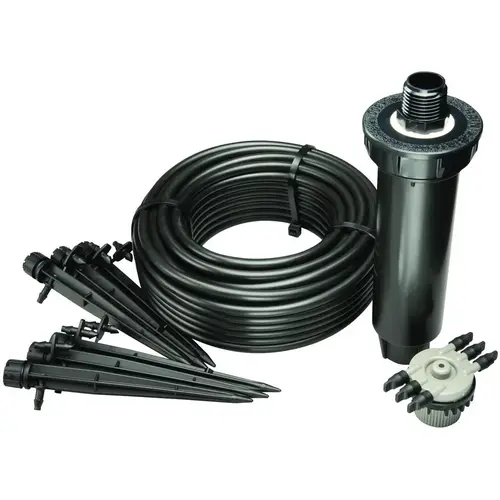 Includes: (6) Bug Caps (6) Stakes to Direct Flow at Each Plants (1) 1800 Retro Sprayhead with Filter and Pressure Regulator (1) 50 ft 1/4 in Distribution Tubing (1) 6 Port Manifold