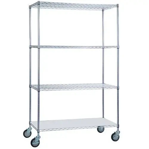 Rolling Wire Shelving Cart 18x36x78 With Solid Bottom Shelf