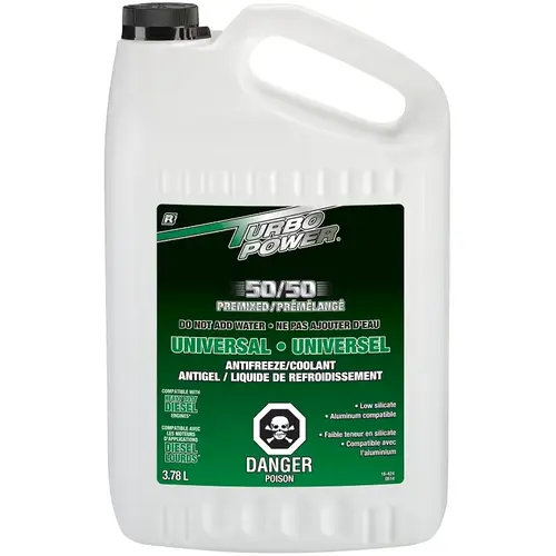 Universal anti-freeze/coolant is a superior quality ethylene glycol-based engine coolant with a low silicate corrosion inhibitor package. This product protects coolant system metals, including heat-rejecting aluminum, against pitting caused by cavitation and corrosion. It provides exceptional cooling in summer and excellent protection against freezing in the winter. It is recommended for use in older model domestic and foreign cars and light duty trucks and will provide up to 80,000 km or 2 years service life when installed as initial fill or after a complete flush and cleaning of a cooling system in reasonable condition. It is compatible with supplemental coolant additives (SCA) and coolant filters and thus can be used in heavy-duty diesel coolant systems when pre-charged with SCA.