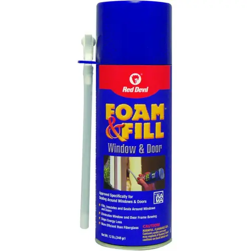 Red Devil Window and door polyurethane straw foam sealant is specifically formulated for filling, insulating and sealing around windows and doors. Innovative low-pressure and expansion formula eliminates the chance of bowing and provides a full cavity fill. Takes the shape of all cavities forming a permanent, air-tight and waterproof seal on wood, metal, masonry, glass and most plastics. It stops air infiltration and in turn prevents heat loss and drafts. It is environmentally safe, contains no CFCs and HCFCs. It is UL listed and an AAMA verified component.