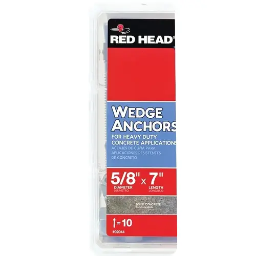 Red Head 03044 TruBolt Wedge Anchor, 5/8 in Dia, 7 in L, Steel, Zinc - pack of 10