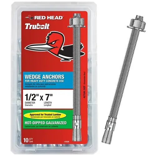 Red Head Concrete Wedge Anchor, 1/2 in Dia, 7 in L, Head Type: Hex, Steel, Hot-Dipped Galvanized, Silver