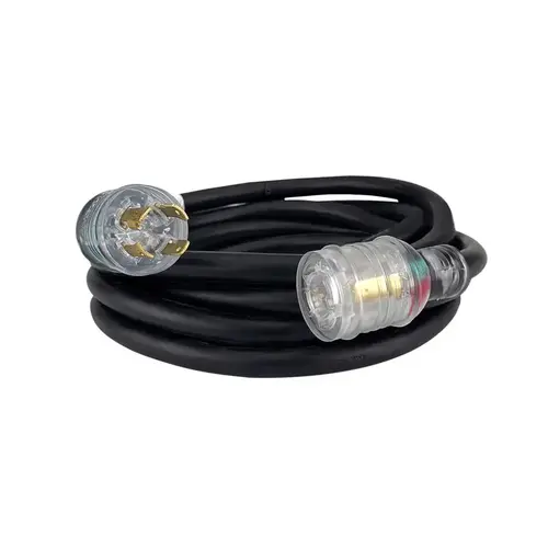 Outdoor cord, 30 A, 10 ga, 4-wire with L14-30 twist lock plug and connector end. Includes an extra 20 A L14-20 plug end to accommodate most portable generators having L14-20 and L14-30 power outlets. Full-color packaging. UL listed.