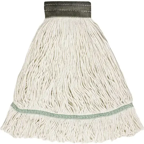 Looped End String Wet Mop, Rayon, Large 20 oz., White with 5 in. Headband. Looped end mop covers a wider surface area (without gaps and loose strands common with cut end mops). Mop absorbs up to 6-times as much liquid and covers twice as much floor area with fewer trips to the bucket and wringer, creating labor savings.