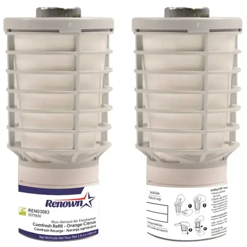 Eliminates odors 24/7 leaving restrooms smelling clean. Passive dispenser, non-aerosol (easy to install): REN03575-CT. Environmentally friendly. Supply last 60-days or 90-days depending on the setting. No propellants or added VOCs, battery-free operation and recyclable refill components.