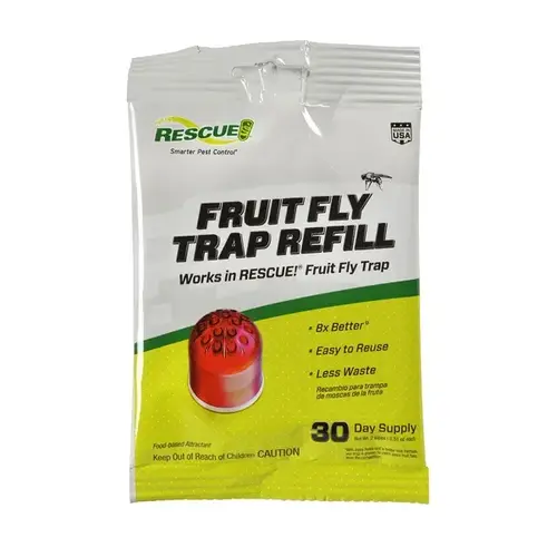 RESCUE! Fruit Fly Trap Refill combined with RESCUE! Fruit Fly Traps catches fruit flies faster than competing traps. By studying fruit flies in our insect lab, we determined the exact shade of red that will attract fruit flies. This refill includes a 30 day supply.