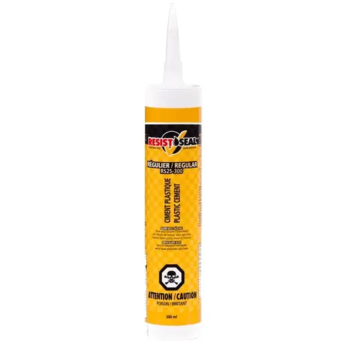 Resistoseal plastic cement is an all-purpose black mastic composed of bitumen, fibers and mineral fillers, with a low level of solvent. It is used for caulking and repairing holes and cracks. It adheres to most materials without primer. Its economic formulation offers good resistance to temperature variations.