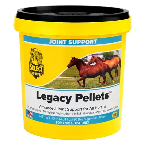 Legacy is a supplement specifically designed for senior horses. Compounds proven to support the joint, connective tissue and soft tissue are featured in Legacy. Glucosamine HCI, MSM, Chondroitin Sulfate, and Yucca are key ingradients for healthy joint support. Ester-C and Vitamin E have been also added as Antioxidants. Made was Stabilized Rice Bran and pelleted for easy administration. Legacy is a cost effective way to care for your horse whether it's an old friend or a seasoned athlete. Features & Benefits: