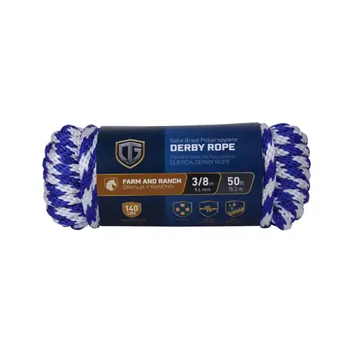 Polypropylene Derby Rope, Braided, Smooth, Blue, 3/8-In. x 50-Ft.