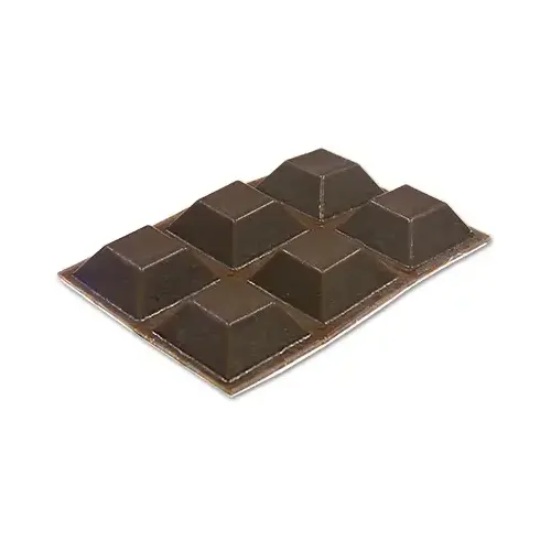 Vinyl Bumpers, Self-Adhesive, Brown, Square, 3/4-In - pack of 6
