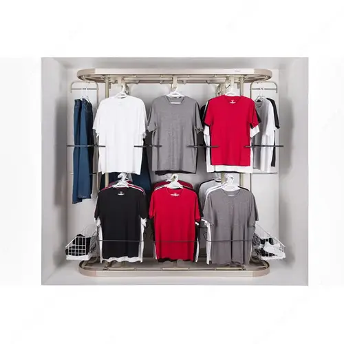 Revolving system for clothes storage, ideal for small closets.