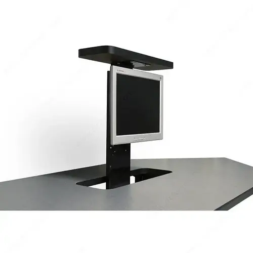 - When the monitor is not in use, it can easily be pushed down into the desk to maximize the desktop surface.