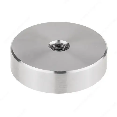 Ideal for signage, displays, railing, presentation and desk tops. Sold individually (cap shown, but sold separately). Available in several sizes with thread count 3/8" - 16 . Stocked in standard finishes and lengths. Suggested hole size in glass - 7/8" for adjustment.
