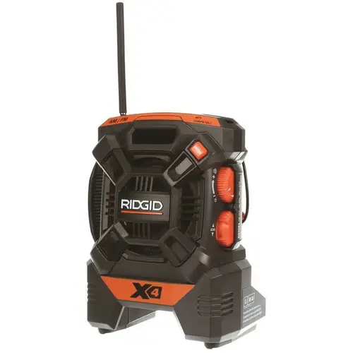 If over-the-air radio stations are underwhelming, just use the line-in feature on this cordless mini radio to hook up your portable audio device or smartphone for listening enjoyment. Any RIDGID 18-Volt battery (sold separately) will power this instrument for use at job sites or outdoor events, so tote it around using the built-in handle. Like any RIDGID machine, it's durably built and made to withstand bumps and knocks.