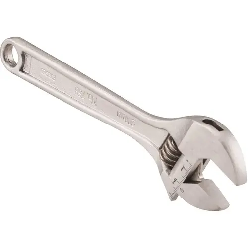 Built for tough jobs, the RIDGID 86907 8 Inch Adjustable Wrench is a handy tool for any toolbox. This adjustable wrench is a versatile tool that has jaws of adjustable widths for use on a wide variety of nut sizes. Offering exceptional durability, this wrench is made of forged and heat-treated high grade alloy steel for maximum strength. It features nickel-based plating with a brushed finish to reduce rust and corrosion, extending the life of the tool. The jaw scales have both metric and SAE graduations for quick and easy adjustments and improved productivity for a wide range of tasks. This 8-inch adjustable wrench has a 7/8-inch jaw opening for use on a variety of fastener sizes.