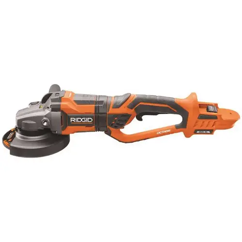 RIDGID introduces the 18-Volt OCTANE Cordless Brushless 7 in. Dual Angle Grinder (Tool Only). The OCTANE Brushless 7 in. Dual Angle Grinder delivers unmatched performance in a cordless package. Run the grinder off 1 or 2 OCTANE batteries for optimal performance, or 2 non-OCTANE batteries. OCTANE tools utilize high performance brushless motors for increased performance. State of the art OCTANE electronics are built to handle maximum power from OCTANE batteries. Backed by the Industry Leading Lifetime Service Agreement, the 18-Volt OCTANE Brushless 7 in. Dual Angle Grinder includes a grinder wheel, a spanner wrench, an auxiliary handle, and an operator's manual. Battery and charger sold separately.