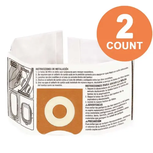 The RIDGID (Size C) wet dry vac dust bag helps you clean up small, dry debris such as drywall dust while keeping the vacuum drum clean. This dust bag also allows for easy debris disposal. Simply remove the bag, no drum lifting needed. The bag fits 3 Gal. to 4.5 Gal. as well as 6 Gal. NXT RIDGID wet/dry vacuums.