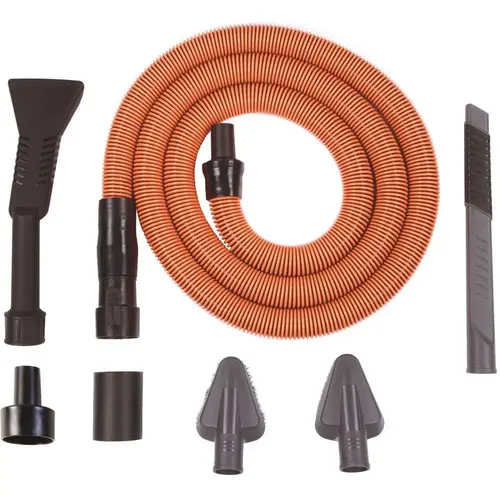 The RIDGID Wet Dry Vac Premium Car Cleaning Kit is an ideal collection of accessories for interior car cleaning. This kit features 7-pieces including a 10 ft. premium hose, soft bristle brush, stiff bristle brush, crevice tool, claw nozzle, hose-to-hose adapter, and a step down adapter (to connect 1-1/4 in. accessories to a 2-1/2 in. hose).