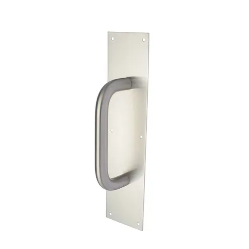 Straight Pull Plate, 1 In. Diameter Pull, 8 In. Center to Center, 4 In. by 16 In. Plate, Satin Stainless Steel
