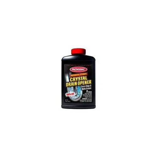 Professional-strength crystal drain opener clears tough clogs from pipes, destroys grease and will keep drains clear. Professional-strength crystal drain opener contains 100% LYE. Not for use in toilets, garbage disposals or with aluminum, lead, zinc or galvanized pipes.
